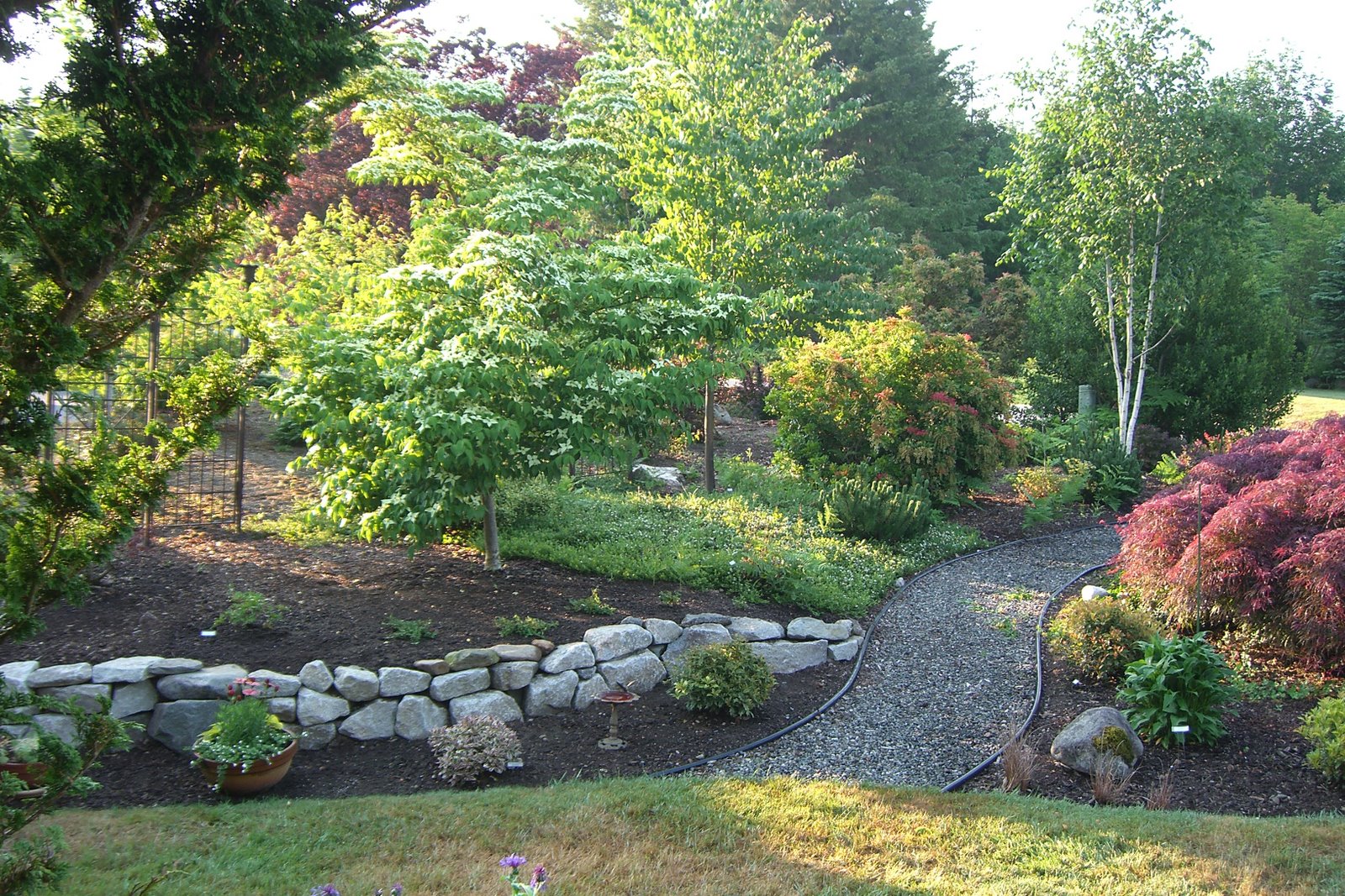 We finally finished our rock walls and new plantings in the front yard. It took three trips in the little Volvo to get the almost ton of rocks we needed. We like this new way to manage the slope from the east side of the yard and it gives us a new space to highlight some colorful bushes and flowers.