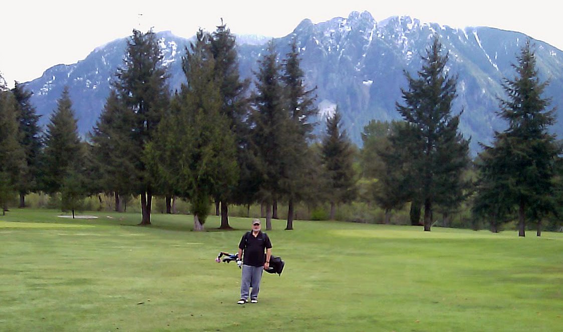 After several days of typical cool, drizzly Seattle spring weather we got a peek at the sun for a while today. I dropped by Mt. Si and got in nine holes. What a great setting: 55 degrees, mixed sun and clouds and still a hint of snow on the mountain. It didn’t hurt that I shot an easy 40. What could have been: I missed birdie putts from six and nine feet!