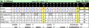After I shot 76 back on August 11 I wondered when I’d ever break 80 again. Over the last five weeks my game has been inconsistent (what’s new?) with an average score of just over 87. My two rounds in Texas were just so-so and a non-scoring practice round yesterday was nondescript. I was pleasantly surprised to start off with a birdie today but had no inkling that I would record three more birdies and go to the 14th tee at even par. My one-under par 35 on the front nine was the first time I’ve played a sub-par nine holes. The inconsistent play of the past couple of weeks is reflected in today Handicap Index update: I’m back up to 13.8.