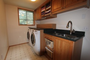 Ater some two months, our dingy old laundry room has been transformed into a stylish cherry wood cabinets, green granite countertop wonder.