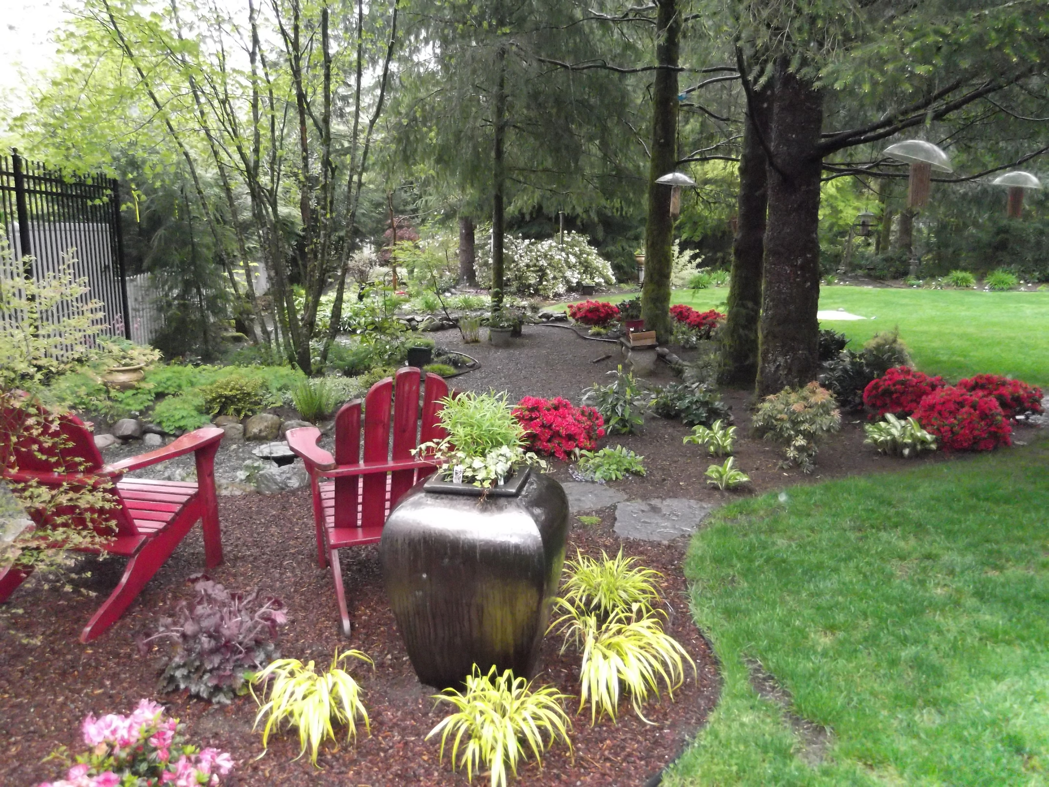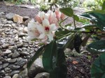 We are still mired in a record cold, record wet spring. We’ve used the few brief rainless periods to keep up with our landscaping projects. Alas! Yesterday –May 14th– a few rhododendrons began to show blooms. The red azaleas we just planted a couple of weeks ago are in full flower but they had the advantage of spending most of the spring in the nursery.