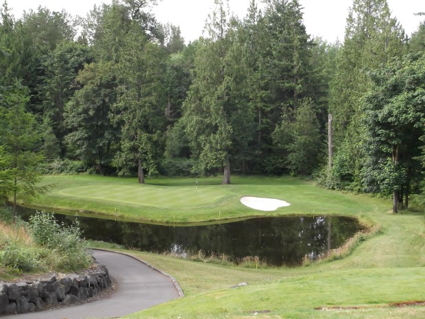 After being humbled at Chamber’s Bay on Tuesday I was happy to be back at the familiar surroundings of Mt. Si this morning. Things started off well on hole #1 when I just missed a chip-in birdie and settled for a tap-in par. A poor drive led to a bogey six on hole 2. My chip on #3 hit the flag stick and led to a two-putt bogey. On #4 I missed a 39-foot putt and then missed the 2-footer for par. So after four holes I was three over par.