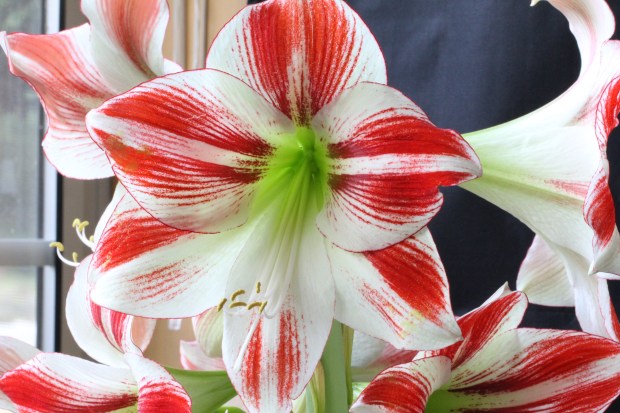For Christmas I got Trisha one of those big Amaryllis bulbs I’ve seen so many times in gift catalogs over the years. I had no idea what to expect so what a delightful surprise it’s been to watch these enormous, magnificent flowers emerge from simple long stems with no leaves. Pretty cool.