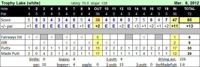 Still, it was my best round at Trophy Lake and an 85 at a course with a 128 slope rating is a great result for me.