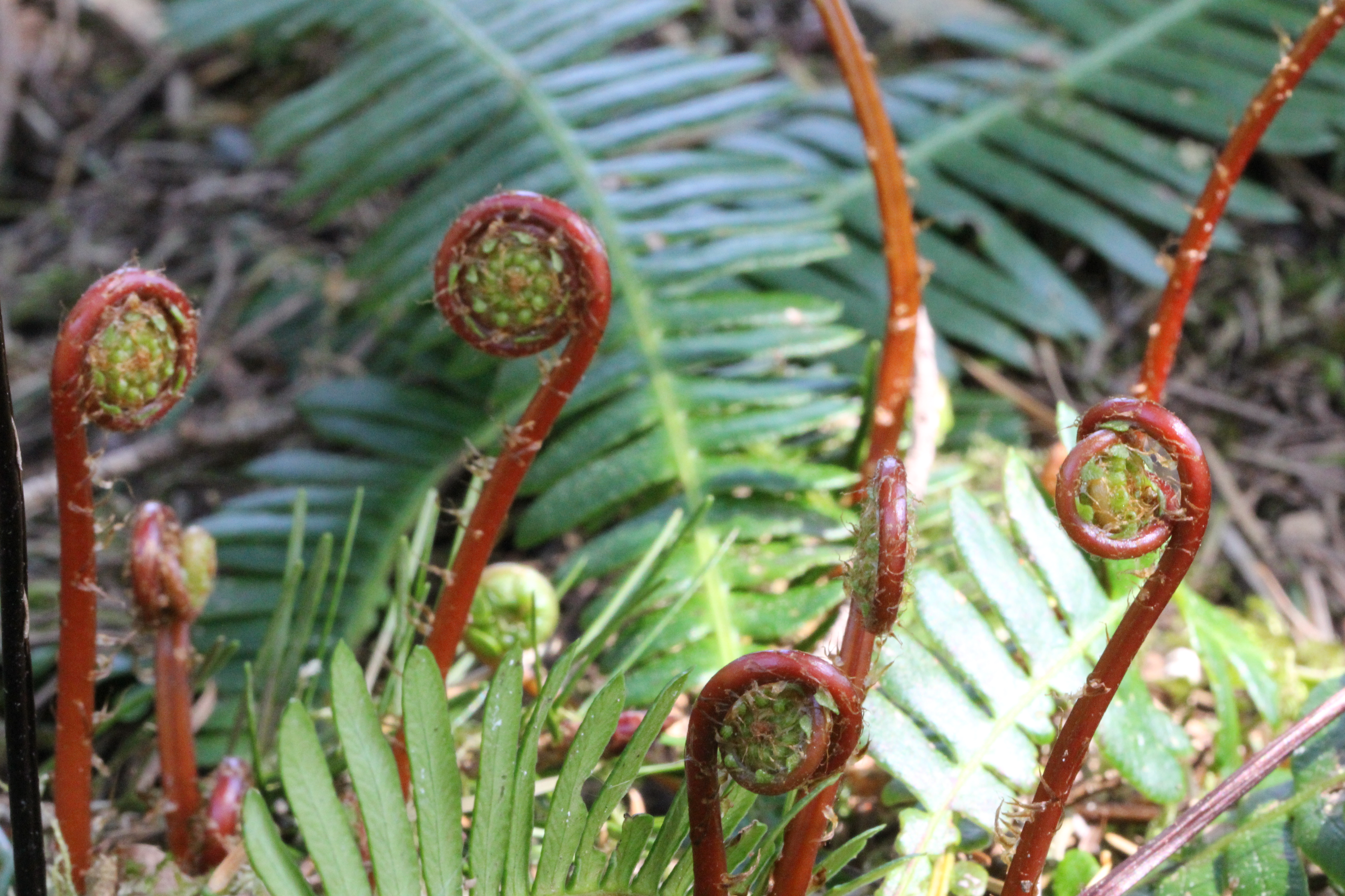 The deer ferns are starting to appear, one of the first plants to emerge from winter dormancy. I think the way the little spiral shoots unfurl is so elegant.