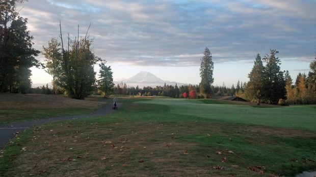 Sometimes I am surprisingly reminded why I like golf so much. Sometimes the score really doesn’t matter in spite of how much I want to play well. Today was one of those days. I rendezvoused with two golf buddies at the picturesque Druid’s Glen course and was greeted with a dramatic cloud-shrouded Mt. Rainier at sunrise. These are the kinds of vistas that make Pacific Northwest golf special.