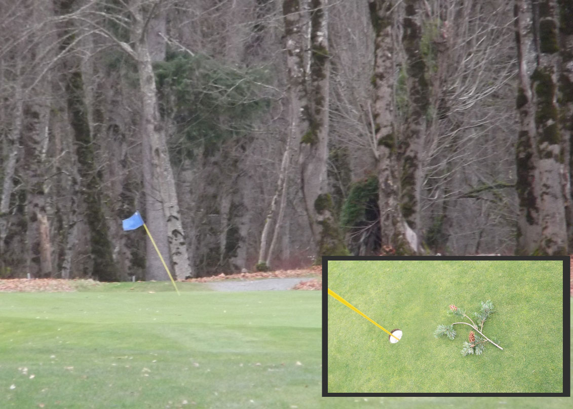 I didn’t hold things together over the final six holes, going +7 to end up with an 84. But with leaves, twigs and pine cones flying around I was pleased enough. No balls in the woods or river, either.