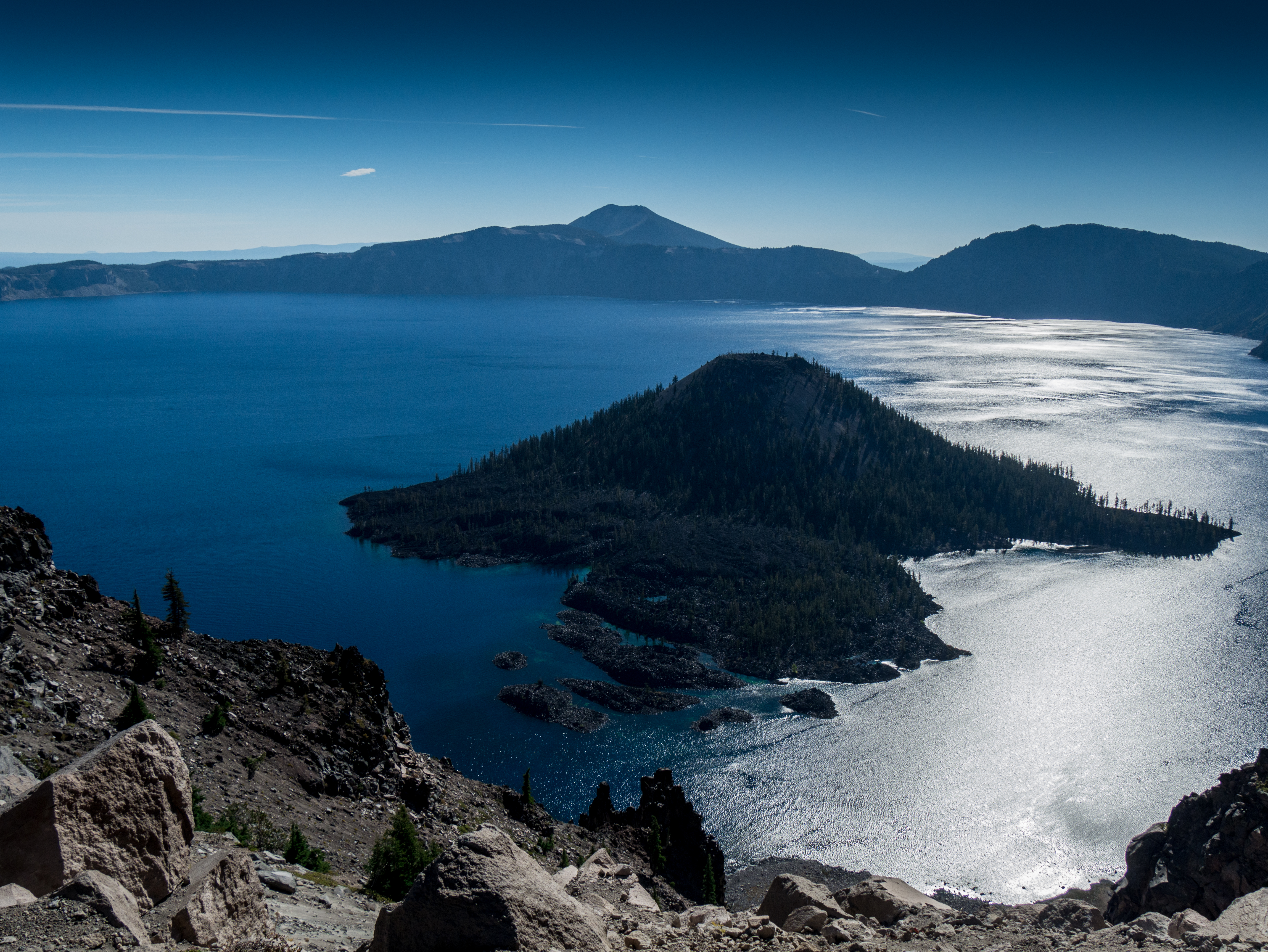 Trisha’s sister, Lisa, accompanied us on our trek to southern Oregon where we visited Crater Lake, making number 24 of 60 on our list of National Parks we hope to visit. It was a perfect day with temperature around 80 degrees, a slight breeze and beautiful blue skies.