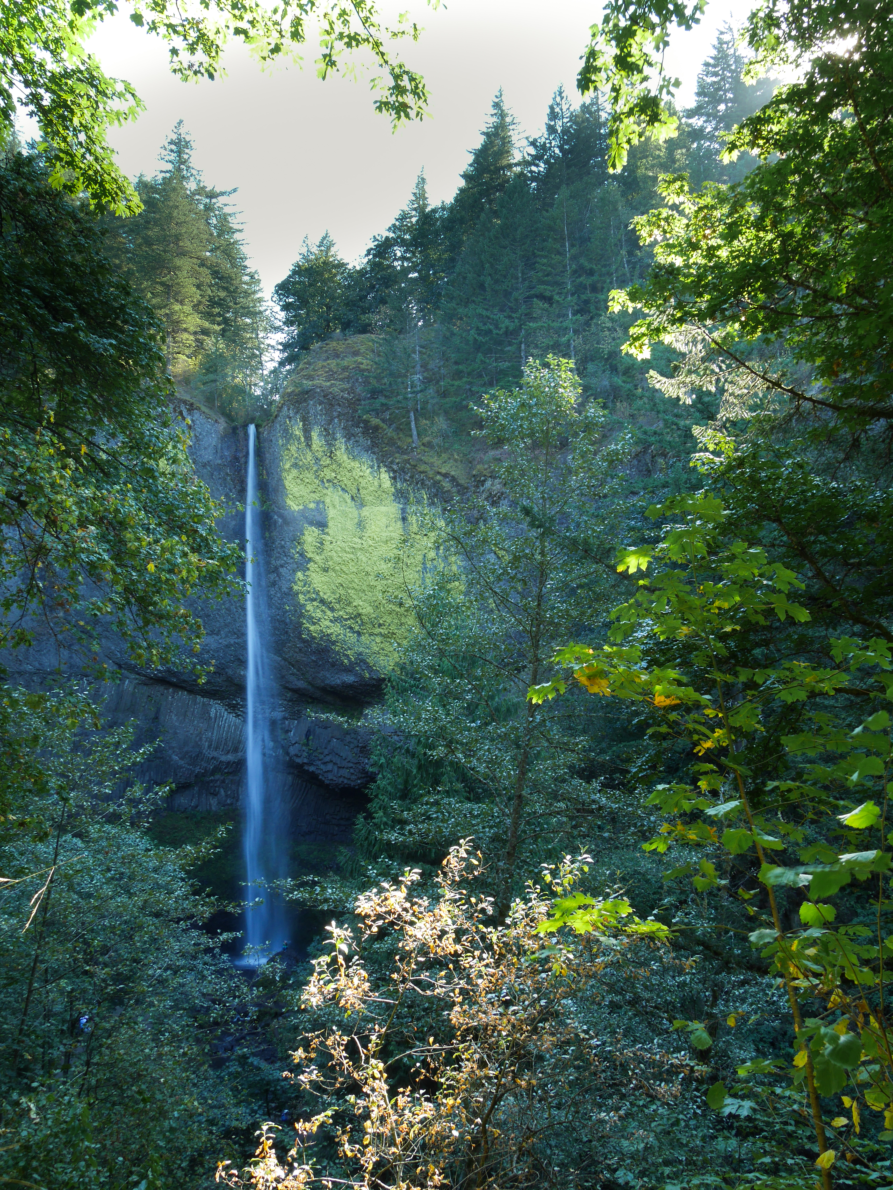 After a stop at the Crown Point Vista House the route back down to I-84 took us by Latourell Falls so we made a brief stop there. Not quite as impressive as the Snoqualmie Falls back home, but lovely just the same.
