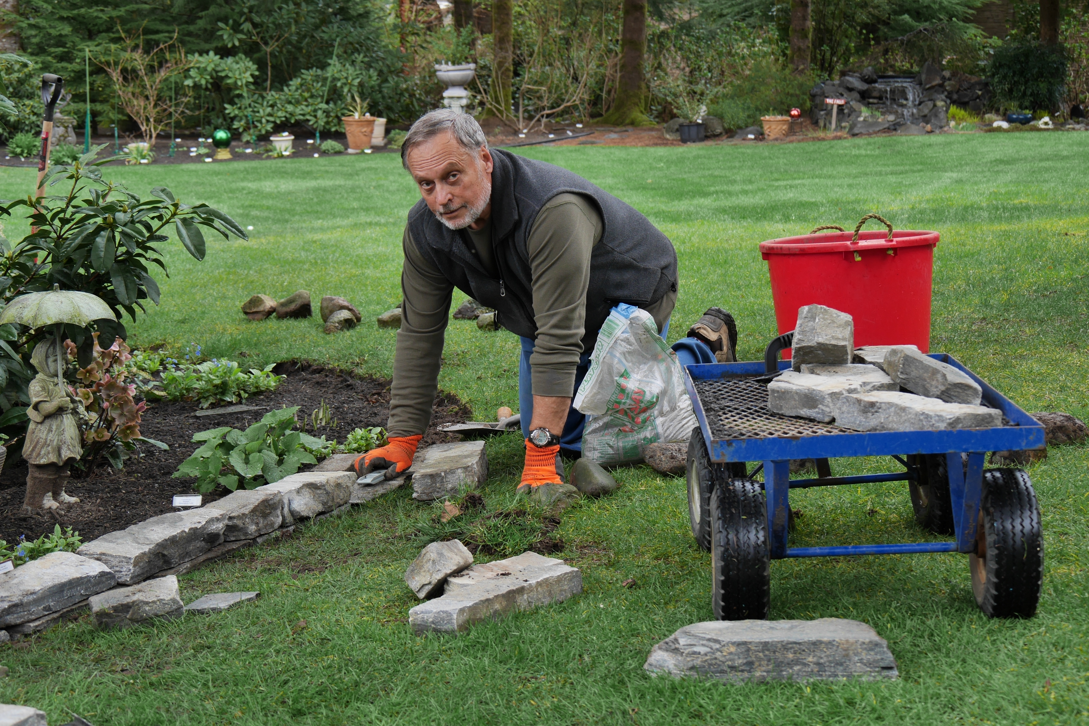 We’ve been wanting to add a rock border to the west side of the yard. We did the east side a couple of years ago and the front along the driveway last year. Two tons of ledge stone arrived this morning and I hope to finish this weekend.