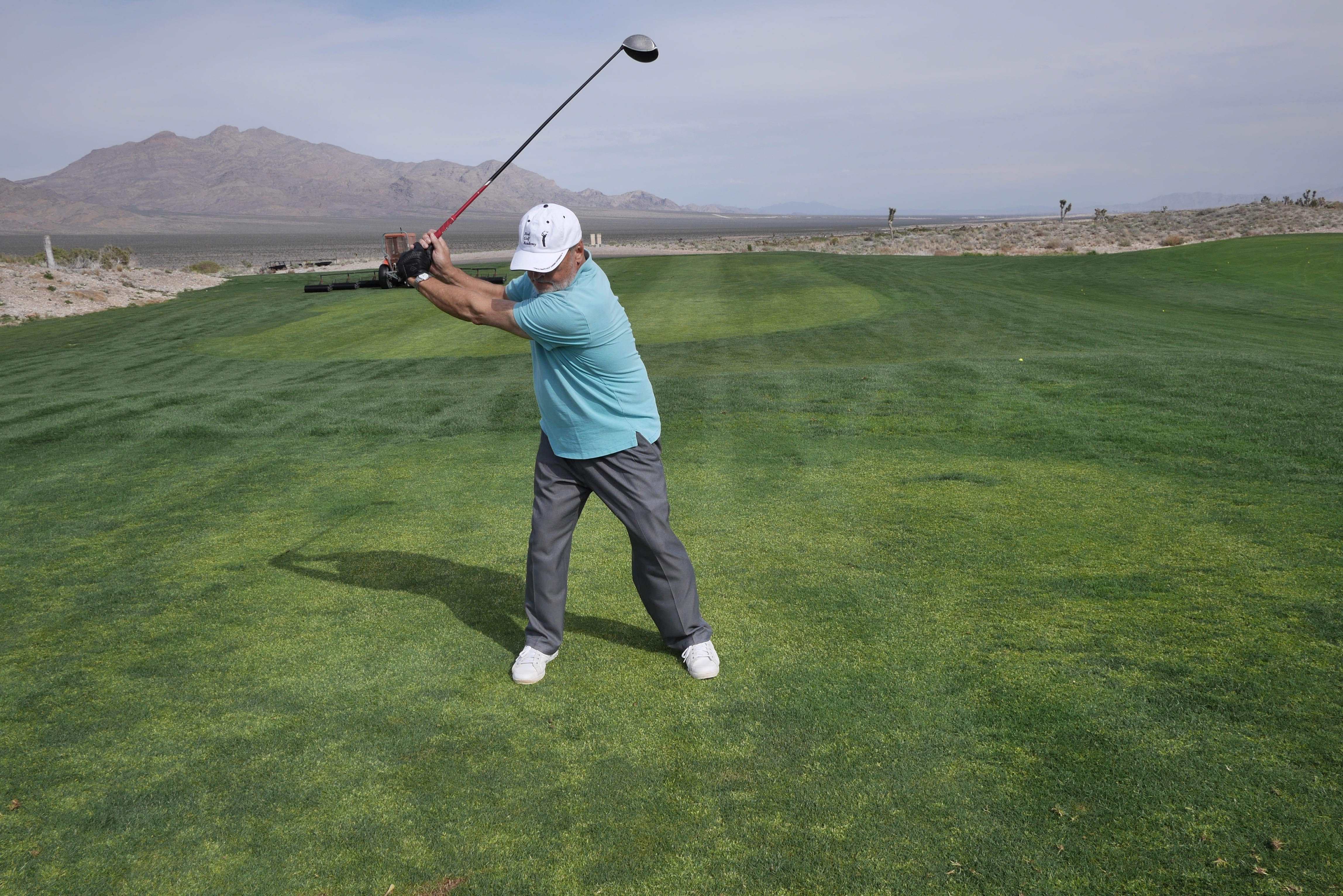 It was an exhausting three days. Just me and the instructor, Jim Samsing, a long-time club pro who even at my age can still really whack a golf ball. He also turned out to be a very good coach. We changed virtually everything about my swing. No surprise to me, since I’ve been playing poorly for about eighteen months. I estimate I hit over 1,000 balls over the three days. I came away with a solid understanding of what my swing should look like and a program to try to get there. He’s my new backswing: