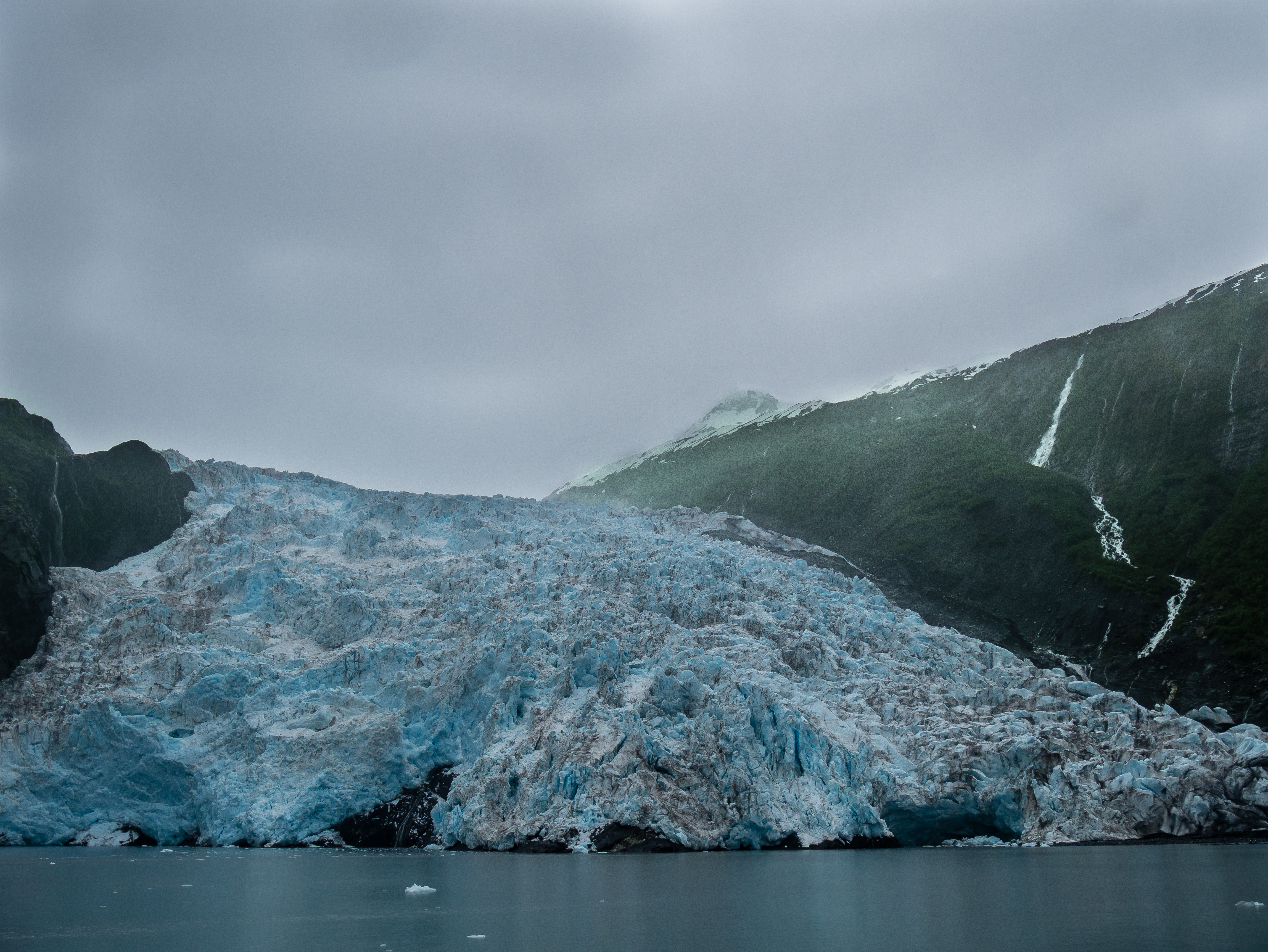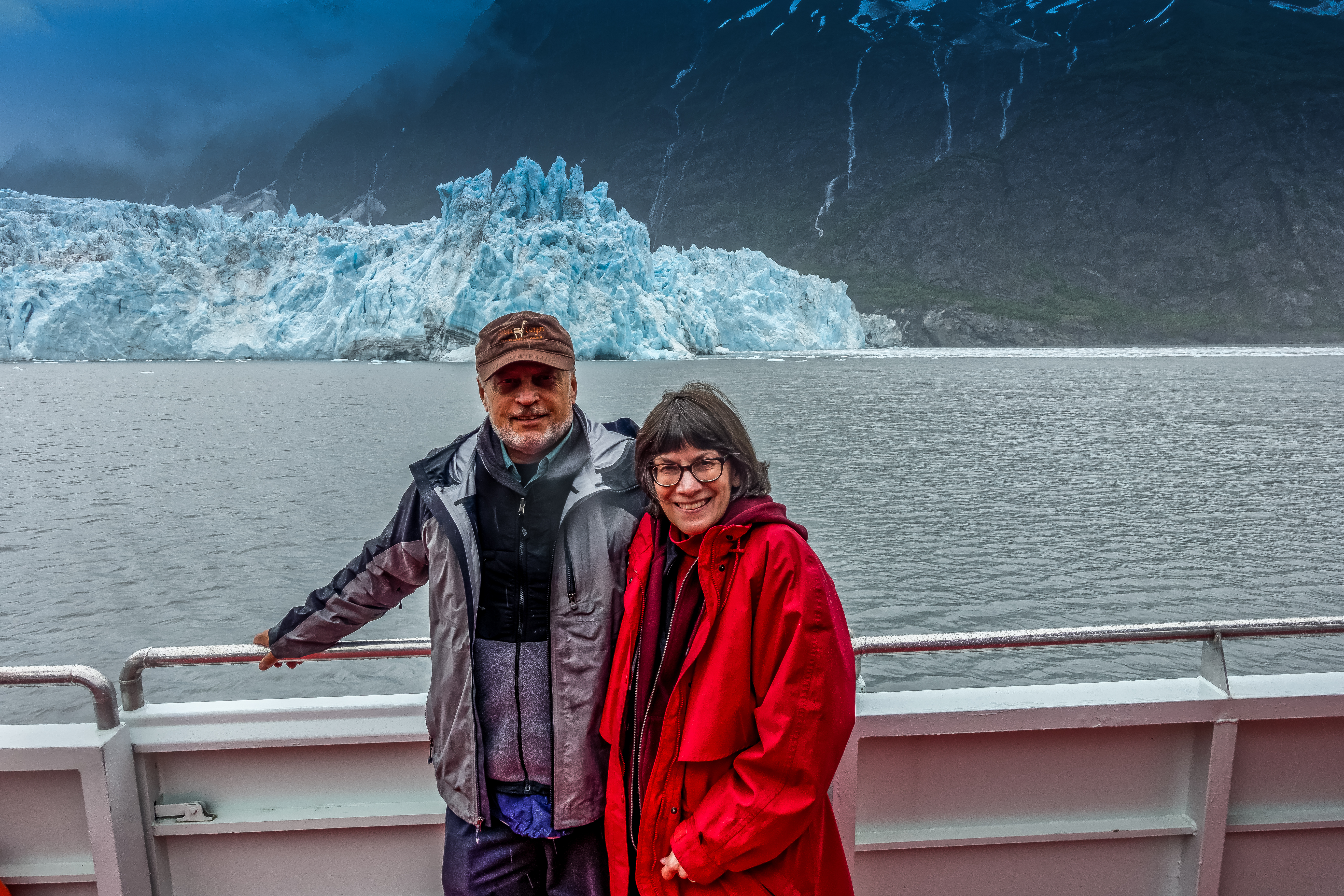 Today’s itinerary took us from Anchorage to Whittier and out on to Prince William Sound, the body of water surrounded by Seward, Whittier, Valdez, Cordova and several large islands. Even though it was a drizzly, overcast day, we had smooth sailing, pleasant meals on board and saw numerous glaciers as well as the requisite whales, seals and aquatic birds.