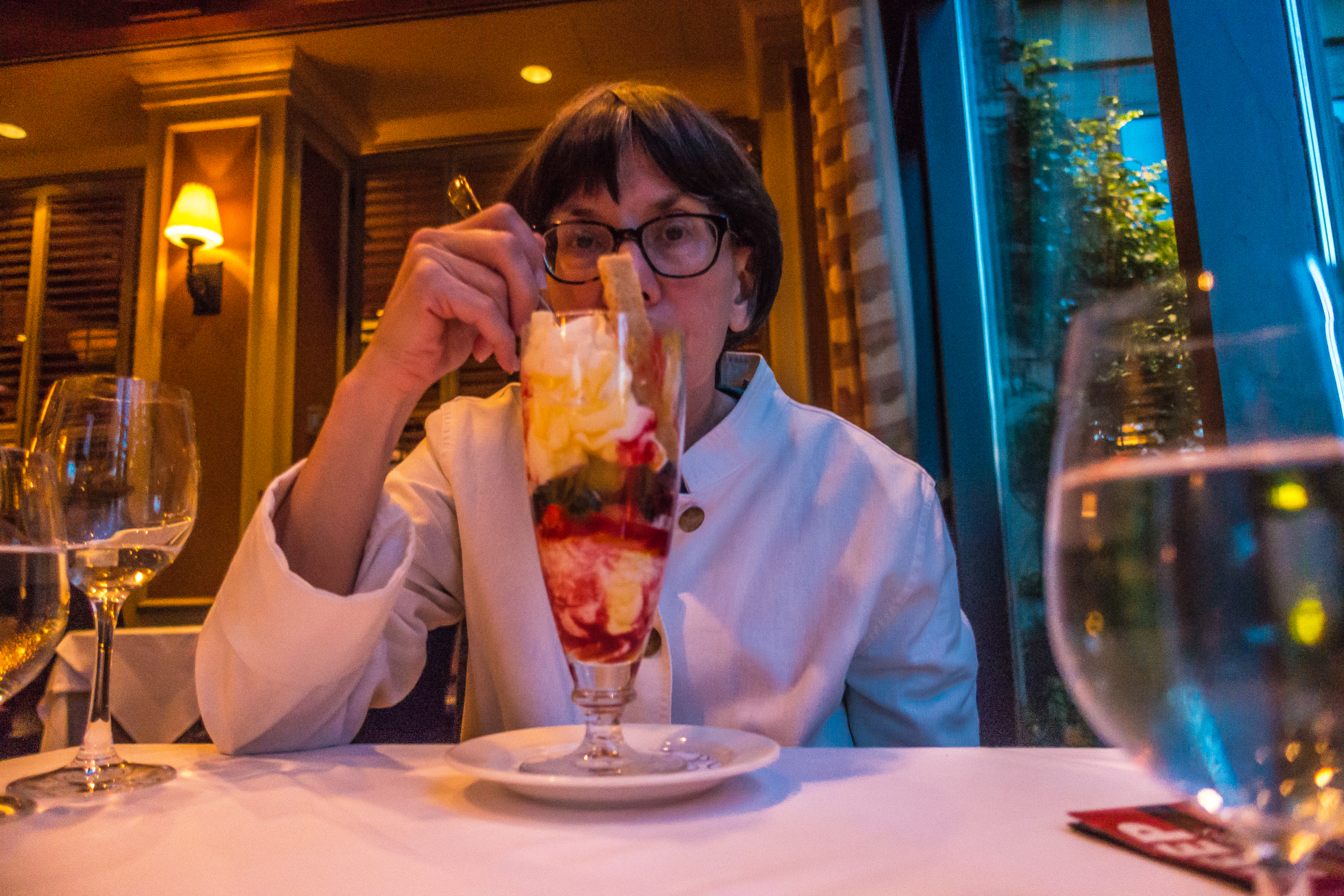 It’s only the day before our anniversary but Trisha can’t resist at least a modest dessert at the Wildflower restaurant at the Fairmont Chateau Whistler: