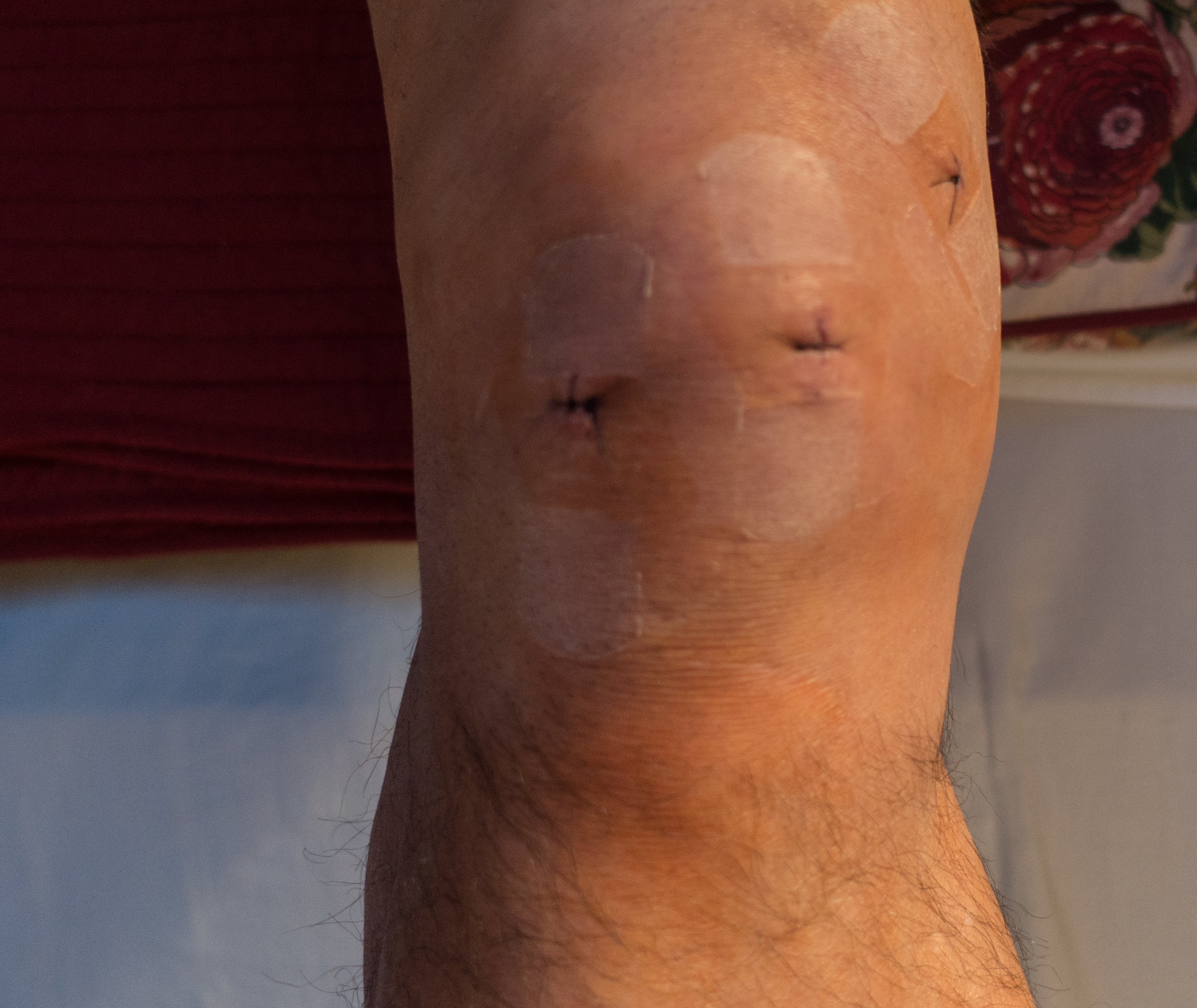 …but feels great. Forty-eight hours after my surgery my knee feels fine. It’s stiff and puffy but I have zero pain and can motor around the house just fine. I hope the next six weeks go as well at the first two days.